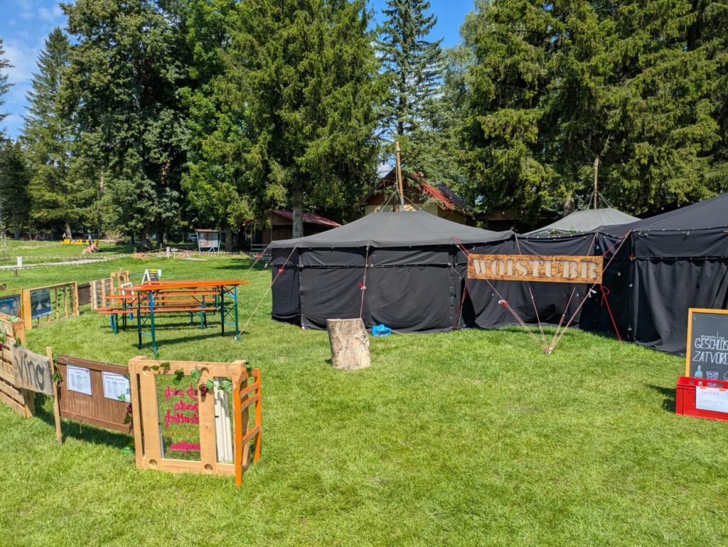 Nach der morgendlichen Ankunft am Samstag stand zunächst der Check-In an, bevor die Zelte aufgebaut und der Lagerplatz erkundet wurden. Direkt neben dem Camp beispielsweise lag ein Schwimmbad, das tagsüber für eine erfrischende Abkühlung zur Verfügung stand und bei den sommerlichen Temperaturen in der kommenden Woche ausgiebig genutzt werden sollte.
