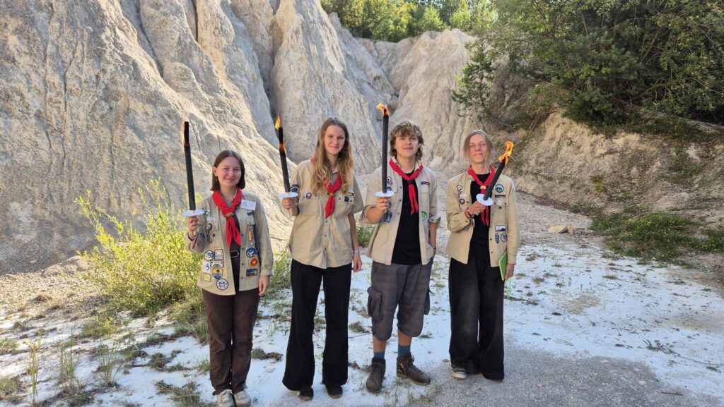 Der Mittwoch bot weitere Ausflüge und Möglichkeiten zur Entdeckung der Umgebung, während der Donnerstag den Rover*innenrunden gewidmet war. An diesem Tag hatten die Gruppen die Gelegenheit, eigene Programme zu gestalten und sich gegenseitig ihre Versprechen zu geben. Auch unsere Rover*innen aus Witzenhausen bereiteten ihre Versprechen vor, die dann am frühen Morgen des Freitags in einem nahegelegenen Steinbruch feierlich abgelegt wurden.